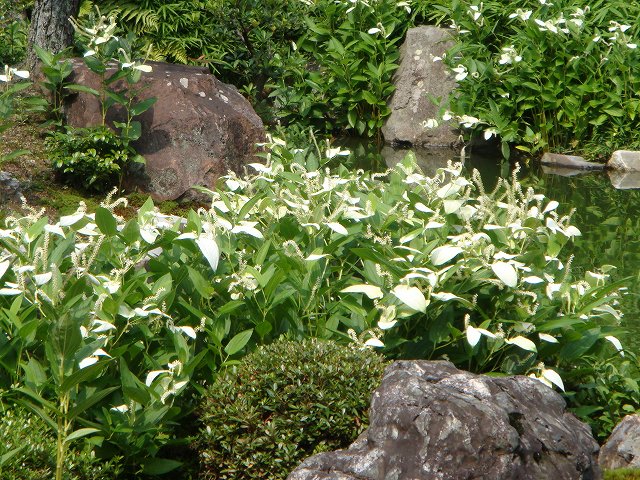 庭園がまた素晴らしく美しいです。白く映っているのが『半夏生(ハンゲショウ・半化粧)』です。