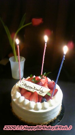 そしてそのあとに、ホンモノのケーキも出てきて、ハピバ歌って、光一くんがキャンドルを消してプレゼント披露です♪